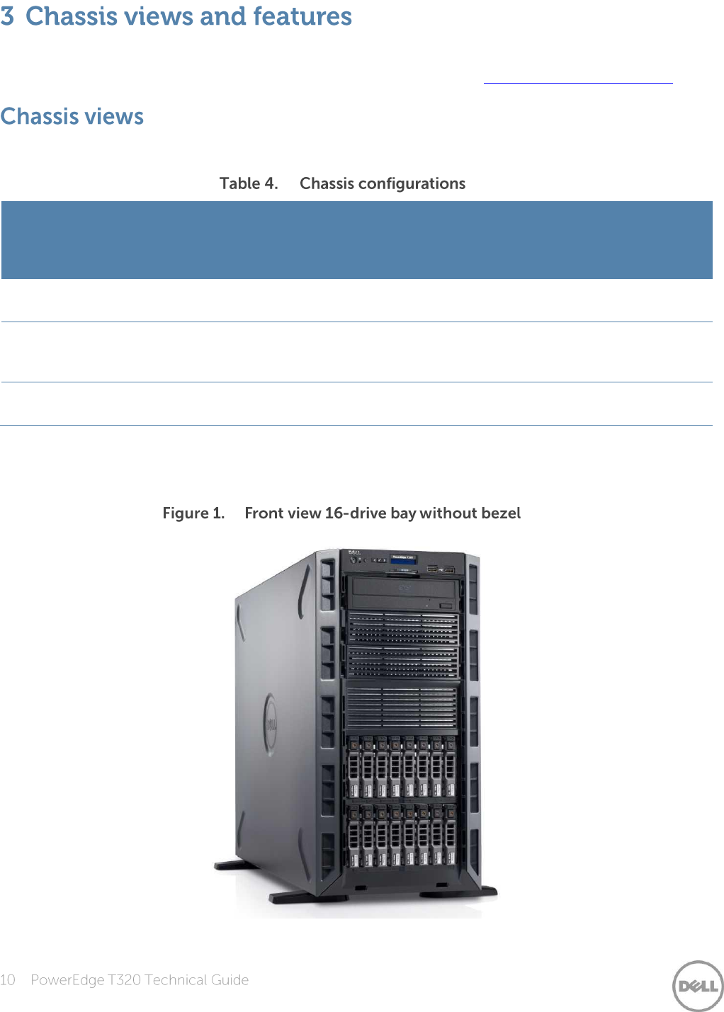 Table 4 lists the possible chassis configurations available for the T320.