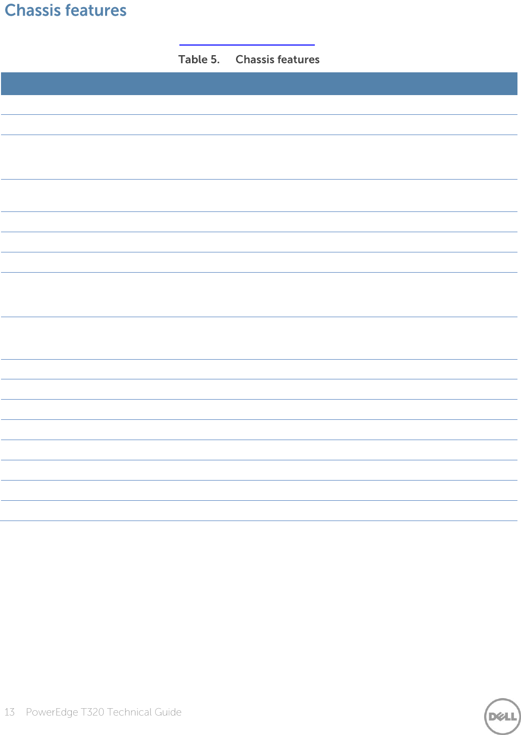 Table 5 lists the various features on the T320. For additional information, see the