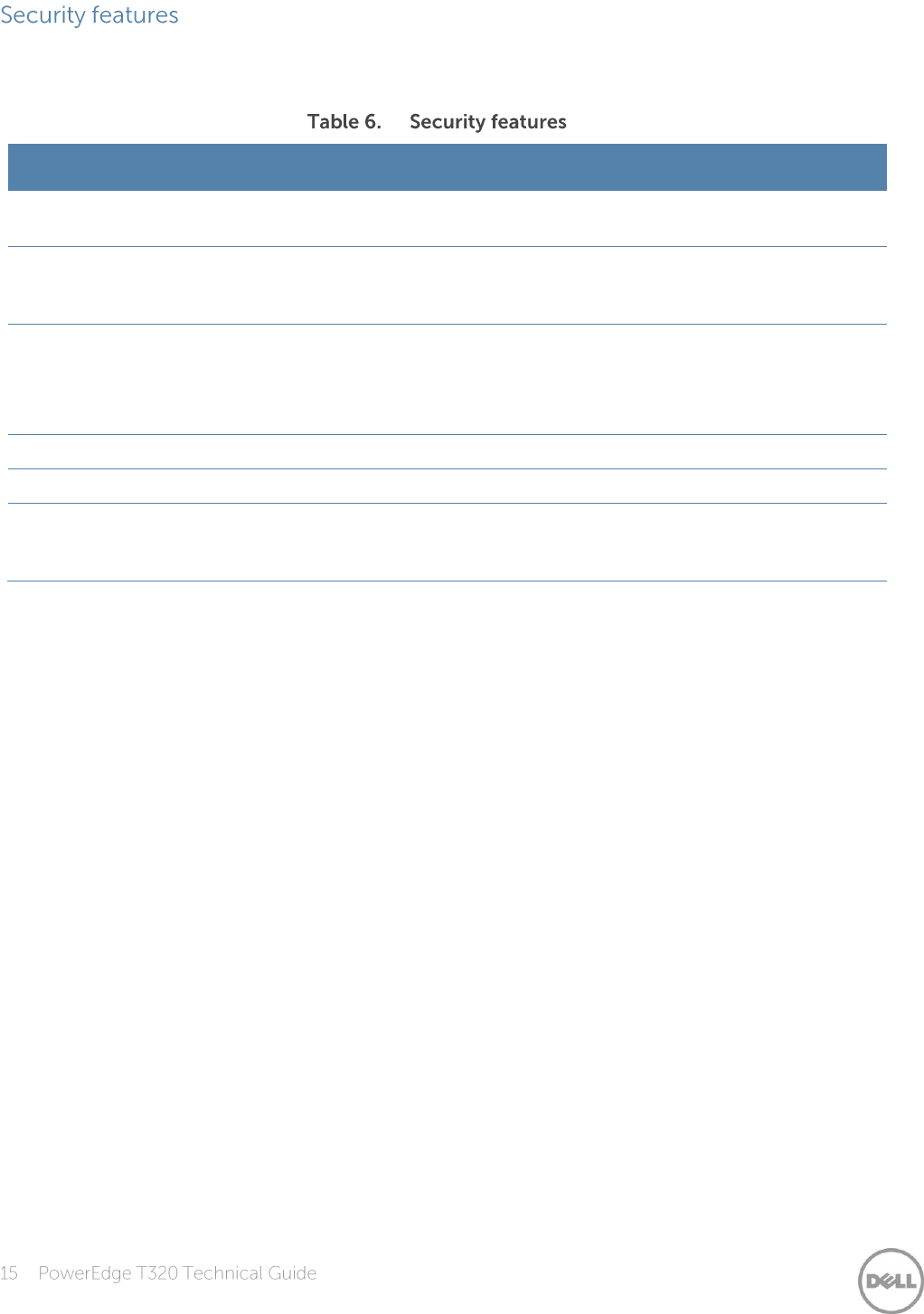 The latest generation of PowerEdge servers has the features listed in Table 6 to help ensure the