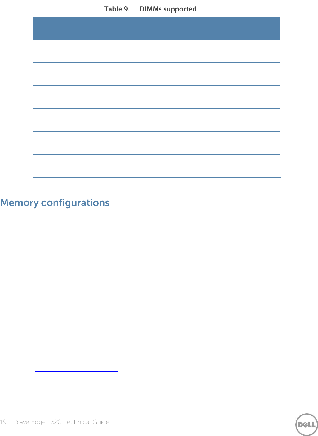 The T320 supports the DIMMs listed in Table 9. For the latest information on supported memory,